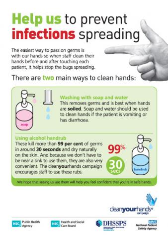 This leaflet is part of an extension of the cleanyourhands campaign, aimed at preventing the spread of healthcare associated infections (HCAIs) in community healthcare settings including primary care and dental services, residential and nursing homes (including independent sector homes), hospices and independent clinics/hospitals. It is designed to heighten awareness in patient/relative waiting areas of how healthcare staff can help protect patients from avoidable infections by cleaning their hands using proper techniques.