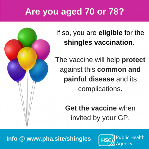The Public Health Agency (PHA) is encouraging 70 and 78 year olds to get the free shingles vaccine when invited.