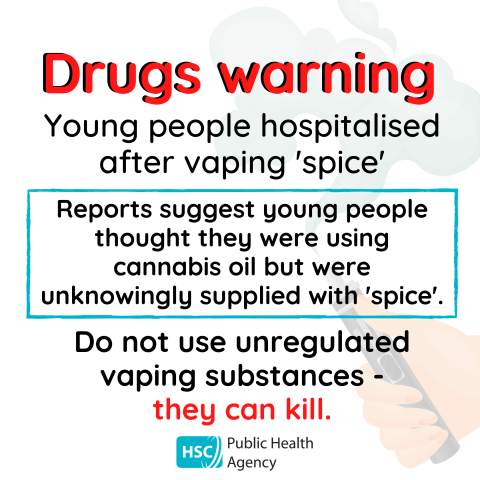 The Public Health Agency (PHA) is reminding everyone of the dangers of vaping unregulated substances as it has again received information about young people becoming ill after vaping ‘spice’.