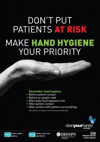 This poster is part of an extension of the cleanyourhands campaign, aimed at preventing the spread of healthcare associated infections (HCAIs) in community healthcare settings including primary care and dental services, residential and nursing homes (including independent sector homes), hospices and independent clinics/hospitals. It is designed to heighten awareness among staff in clinical/treatment areas of their power to help protect patients from avoidable infections by cleaning their hands.