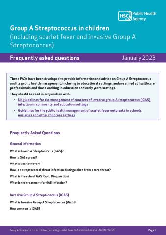 These FAQs have been developed to provide information and advice on Group A Streptococcus and its public health management, and are aimed at healthcare professionals and those working in education and early years settings.